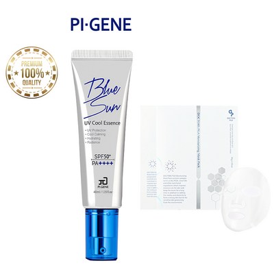 [정품 무료배송] 파이진 블루 선 유브이 쿨 에센스 선크림 40ml+닥터스피지에이 마스크팩 2매 단독 증정! 파이온텍 선에센스 주름 미백 자외선차단 3중 기능성, 40ml -