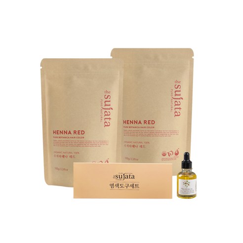 17. 유기농 헤나 염색 수자타 헤나 100g 새치 저자극 염색약, 레드, 2개입